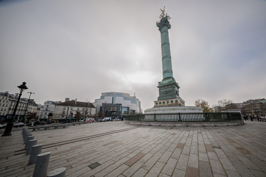 Ibland är det kul att bara gå runt och leka lite med kameran. Den här dagen runt Place de la Bastille hade jag ett extremt vidvinkelobjektiv på kameran. (För ni andra som också är lite nördar… ett raktecknande 10mm objektiv på fullformatskamera, bildvinkel ca 130°)