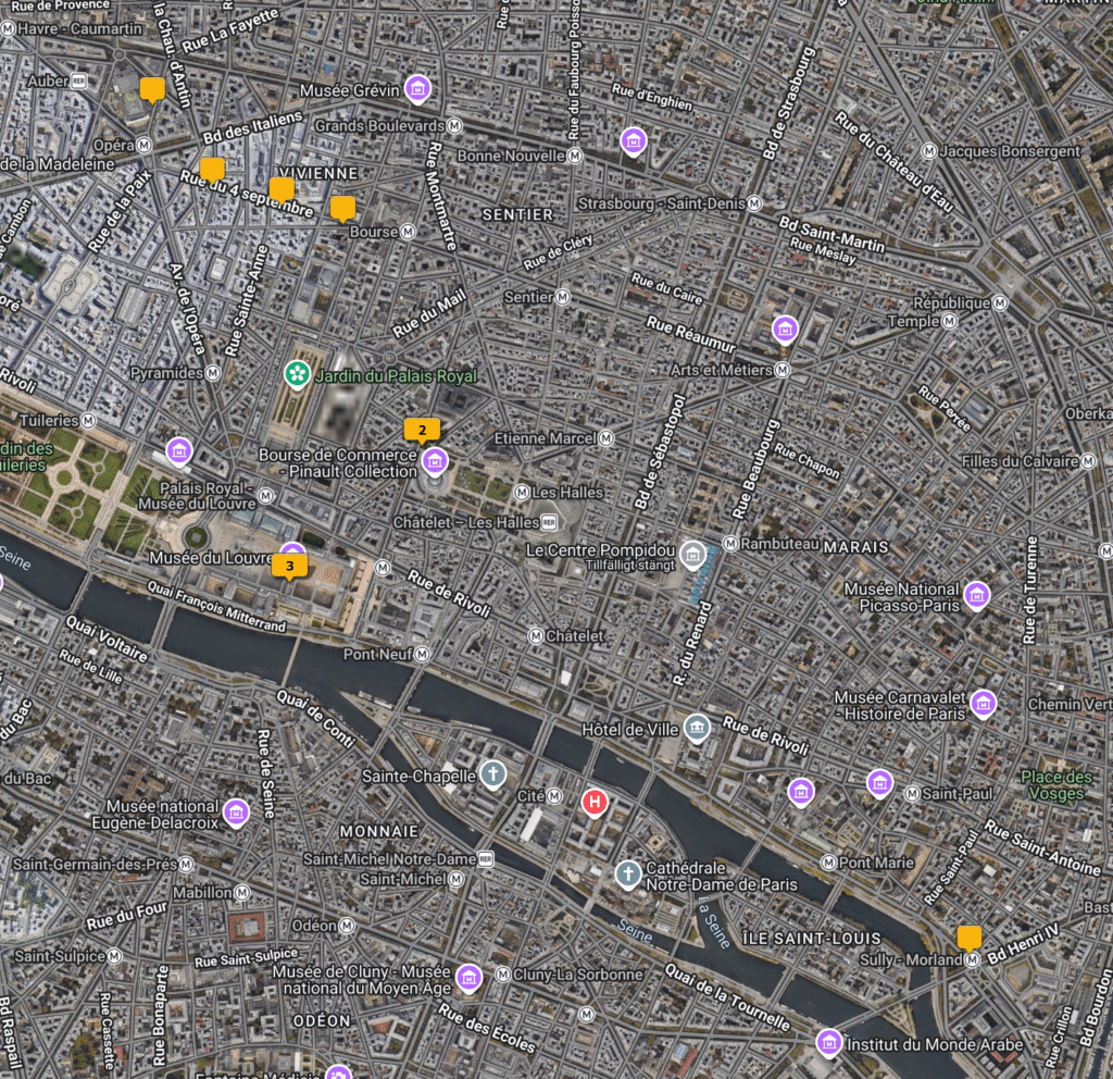 Salle des Caryatides användes för rättegångar och fester, exempelvis bröllopsfesten för Henri III av Navarra (den blivande Hanri IV) och kungens syster, Marguerite de Valois, bara några dagar innan massakern under Bartolomeinatten. I ena änden av salen finns en enorm eldstad, i den andra änden en balkong för de musiker som spelade under kalasen. Balkongen bärs upp av fyra karyatider, vilka ger salen dess namn.