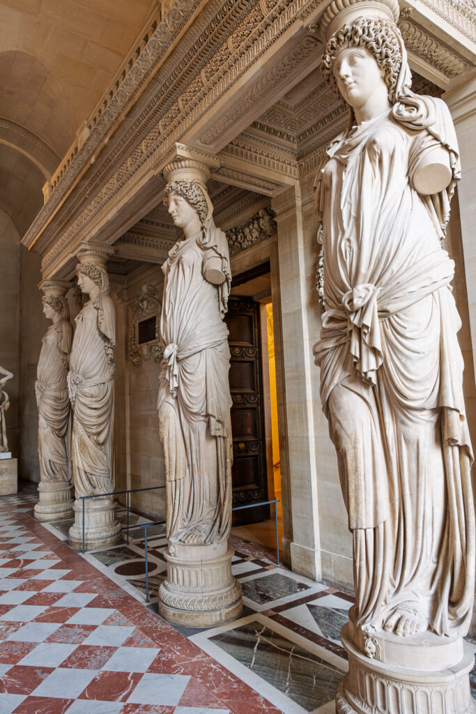 Det var de antika grekerna som började krydda sina byggnader med Karyatider, pelare utformade som kvinnofigurer. Erechtheion på Akropolis är nog det mest kända exemplet, de sju dvärgarna som håller upp taket på Team Disney Building är nog det vulgäraste (vilket ni kan se själva på https://d23.com/app/uploads/2015/07/team-disney-building-1180×6001.jpg). Men i ärlighetens namn, de sistnämnda är ju egentligen Atlanter, den manliga motsvarigheten till karyatider.