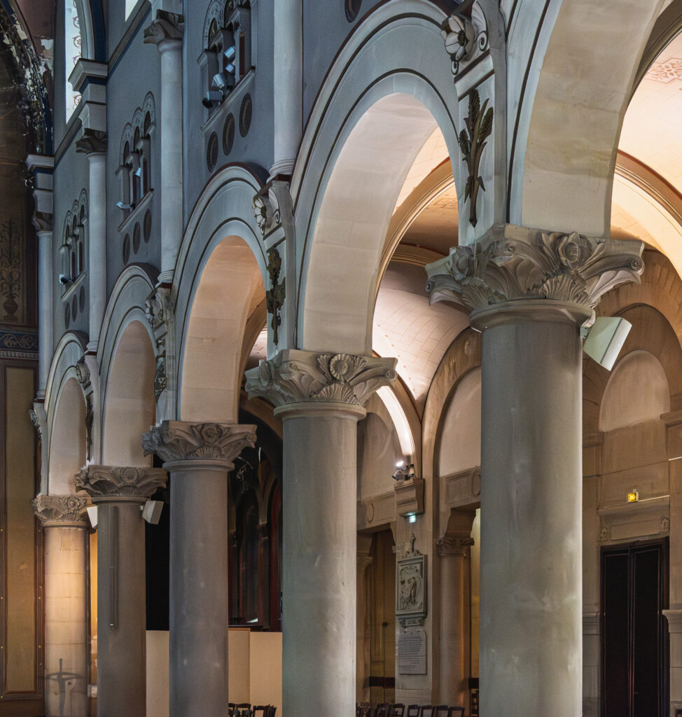 I Paris hittar vi många exempel på den gotiska arkitekturen. Den föregicks av den romanska epoken, från vilket utbudet är betydligt mer begränsat. Det finns flera exempel på kyrkor som byggts om och till under seklernas gång, där vi hittar delar i romansk stil. Den kyrka som kanske uppvisar de tydligaste romanska dragen – tjocka väggar (för att bära upp de halvcirkelformade valven), små fönster (för att inte försvaga de bärande väggarna) och byggnadsdelar utformade som enkla geometriska kroppar (lätt att bygga) – är Notre-Dame de la Gare uppförd runt 1850 i nyromansk stil. Det här var en tid då man gärna återanvände äldre byggnadsstilar; i Paris hittar vi även nygotiska och nybysantinska kyrkor från denna tidsperiod.
