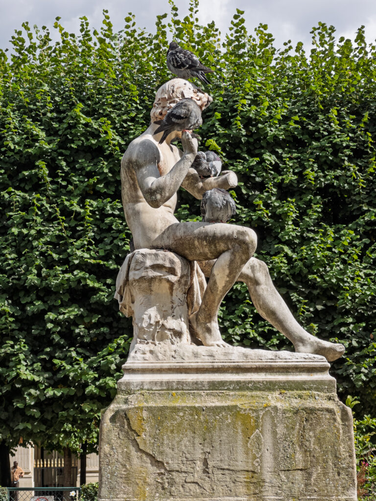Av de permanenta verken är nog statyn av pojken min favorit. Jag tycker om att fotografera duvorna som vilar på honom. Den första duvan brukar alltid landa på huvudet. Rekordet är fem duvor (den femte duvan skymtar bakom pojkens rumpa). Bilden med ”fågelmannen” är en skannad dia från -92, kvaliteten är inte den bästa.