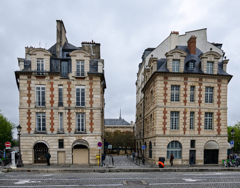 Place Dauphine byggdes som en likbent triangel men husen längs triangelns bas revs för länge sedan. Om vi ställer oss vid triangelns bas, ser vi istället det som var tänkt som den imponerande entrén till Cour d’Appel de Paris. Eftersom denna byggnad är integrerad med Palais de Justice-komplexet, är dock tillträdet till byggnaden löst på ett annat sätt. Det vi ser från Place Dauphine kan alltså, något vanvördigt, beskrivas som en av arkitekturhistoriens pampigaste köksingångar.