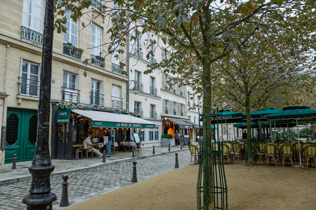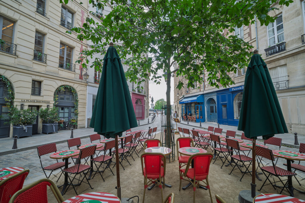 Place Dauphine är ett trevligt litet torg, inte överbelamrat av turister. På vinjettbilden ser ni i bakgrunden till höger en restaurang som figurerar i Midnight in Paris.