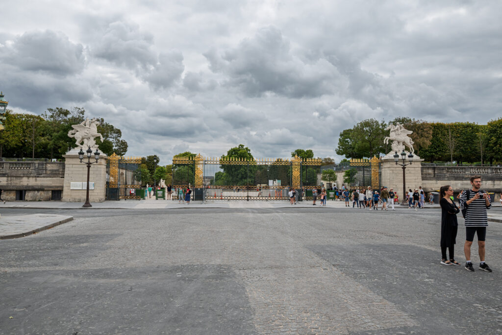 En av de populäraste ingångarna till Jardin des Tuileries är genom de pampiga grindarna i bilden nedan.