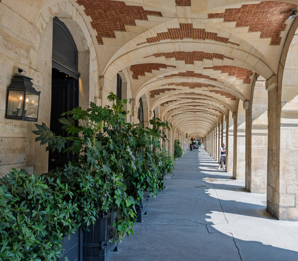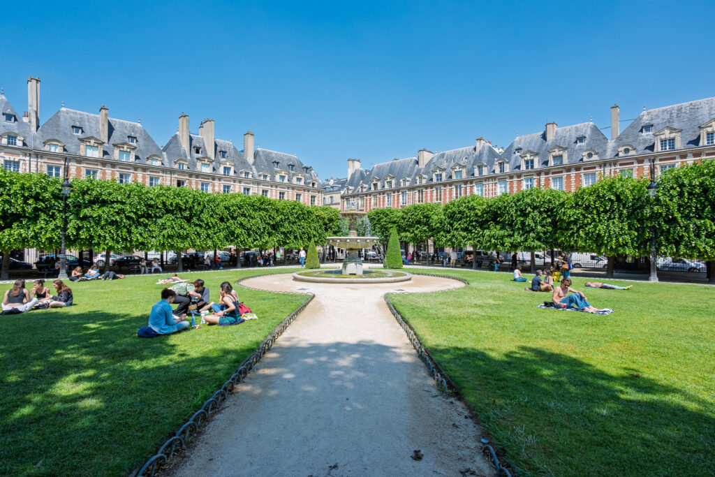 Place des Vosges är en verklig pärla med sin park, husen med de enhetliga fasaderna och med arkaderna som går runt hela torget (i den västra arkaden hittar vi bl. a. Dammann Frères, en högst rekommendabel tebutik). Visst är här många turister, men även kvarterets pensionärer och familjer med lekande barn. Precis som vid många av Paris sevärdheter är det heller inte omöjligt att få bevittna en professionell fotosession.