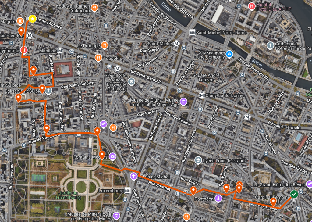 (Sträckan beror på hur långt du går runt i Jardin du Luxembourg)