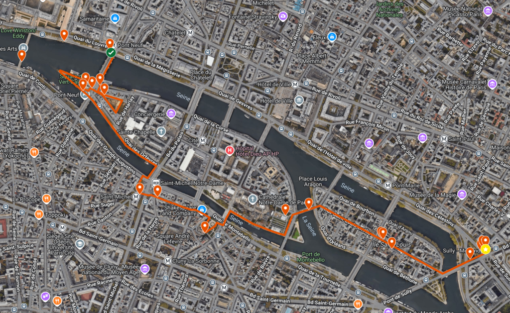 Vad du får se: Pont Neuf, Place Dauphin, Square du Vert-Galant, Promenad längs Seine, Fontaine Saint-Michel, Rue de la Huchette, Shakespeare and Company, Square René-Viviani, Square Jean XXIII, Pont Saint-Louis, Rue Saint-Louis en l’Île, Rester av Bastiljen, Ett vacket hus.
