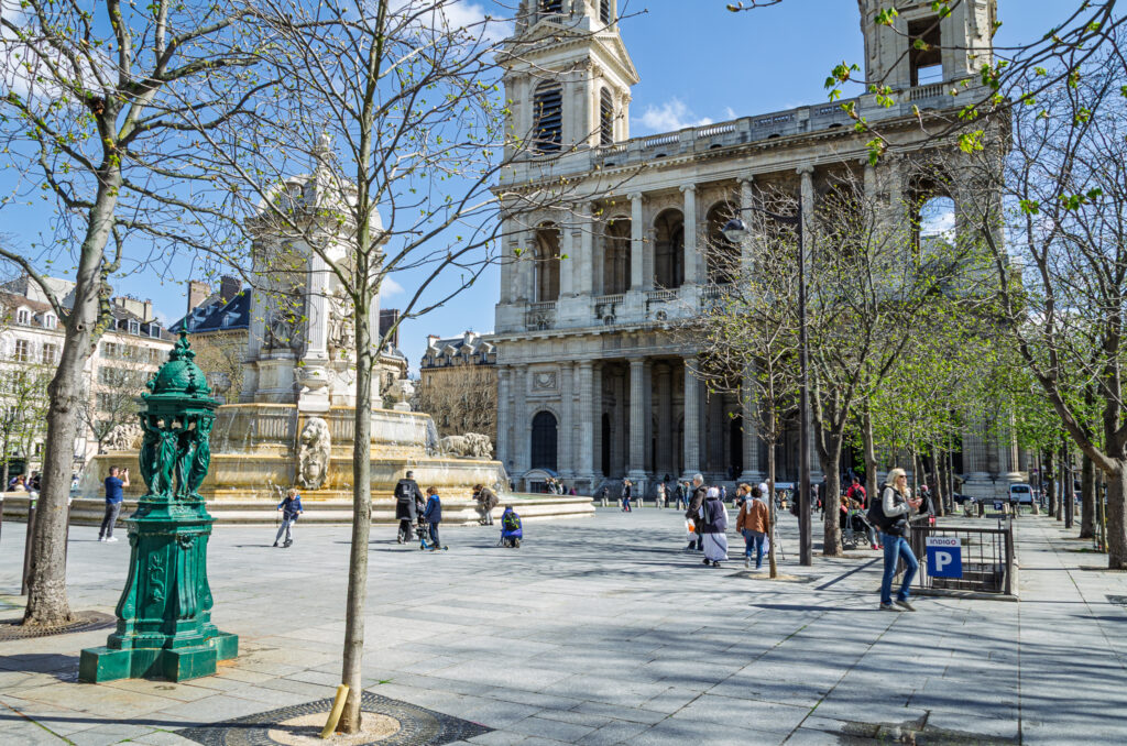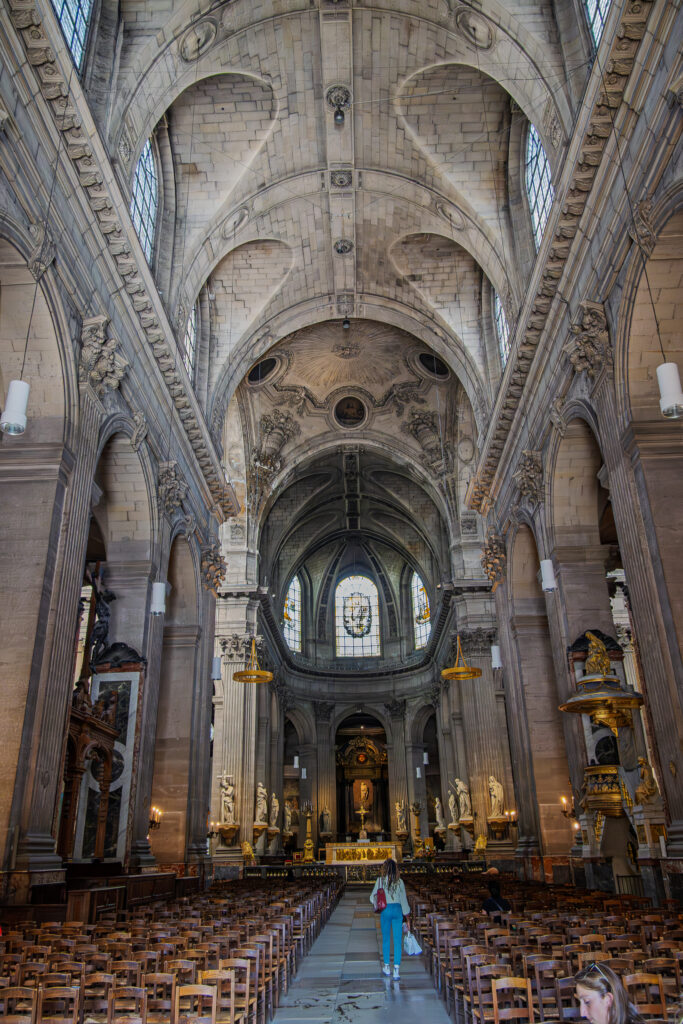 Följ vägen norrut till Église Saint-Sulpice. Kyrkan figurerar i Da Vincikoden, men som jag minns det lämnar beskrivningen en hel del att önska. Inget hindrar dig från att ta en titt i kyrkan om du så vill.