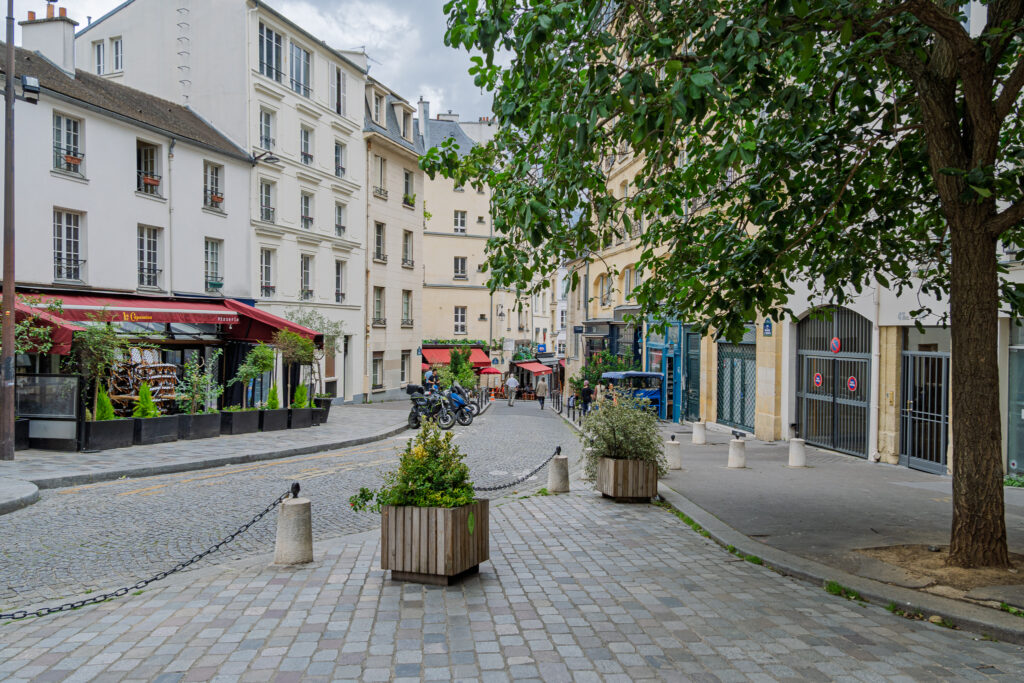 Om du går norrut på Place Saint-Sulpice så kan du inte missa Café de la Mairie. Caféet har inte några toppenbetyg och det är många som inte är imponerade, men en kul detalj ska nämnas. Längst till höger innanför den glasade trottoaren, finns en gatuskylt – Plac_ G_org_s P_r_c. Den som kan sin franska litteratur vet att detta är en blinkning till romanen La Disparation, vilken Perec skrev utan att använda bokstaven ”e”.