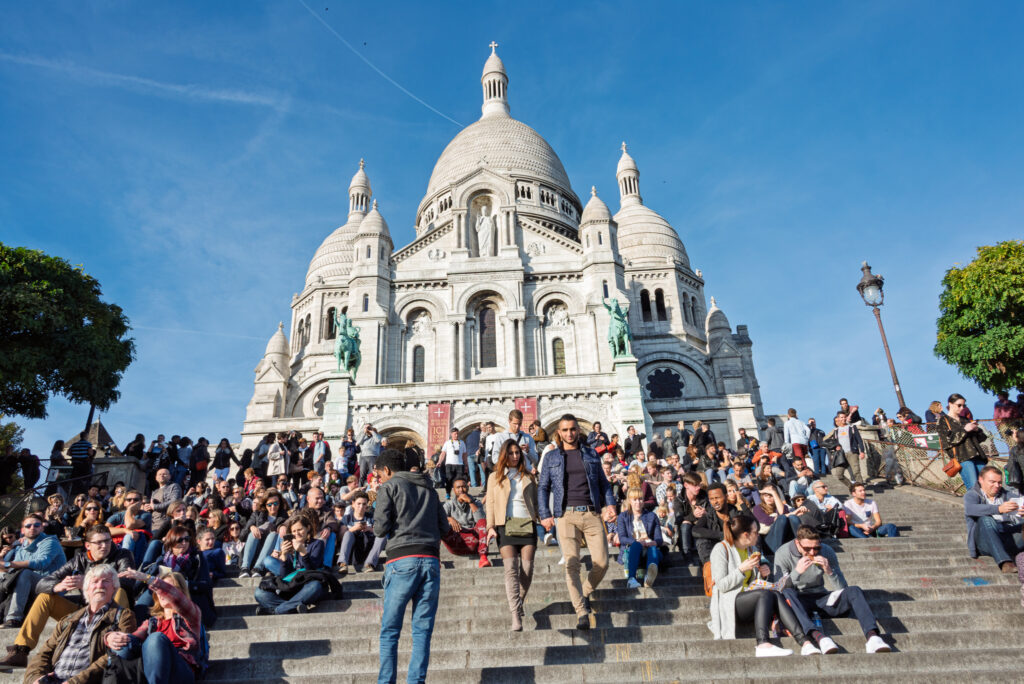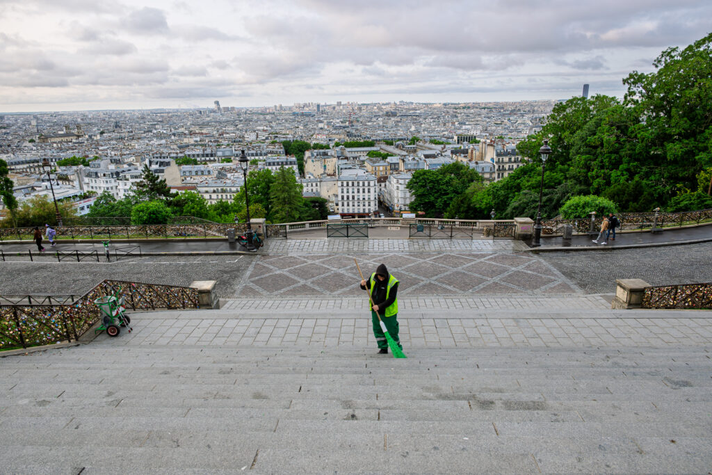 Väl uppe, tar du en kort promenad åt höger och befinner dig nedanför de visuellt bekanta sista trapporna upp till Sacré-Cœur. Trapporna bjuder på såväl utsikt (alltid) som sol (väderleksberoende).