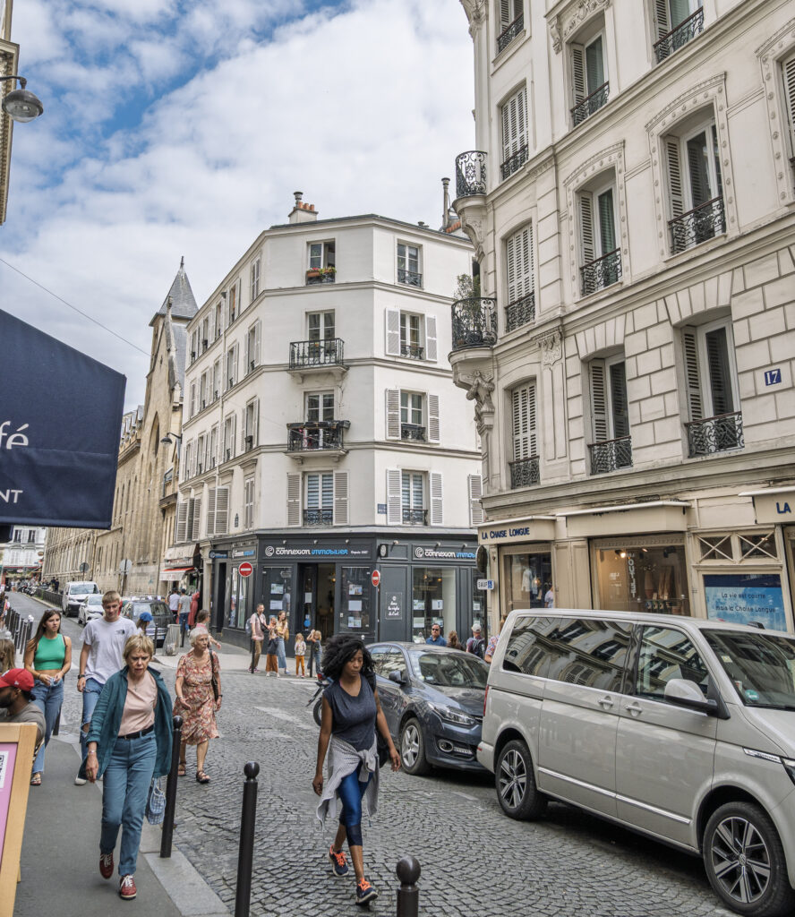 Du ska inte fortsätta nedför gatan, jag bara gillar den bilden. Fortsätt istället snett fram till vänster på Rue des Trois Frères.