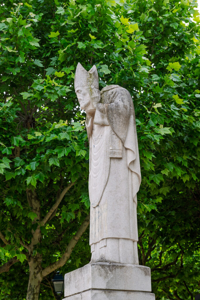 Trappan leder dig till Square Suzanne Buisson där du ser en fontän och en staty av Saint Denis, Frankrikes skyddshelgon. Du kan läsa mer om honom via en av länkarna i slutet av denna promenadbeskrivning. Gå nu tillbaka nedför trapporna och ta till vänster på Rue Dereure.
