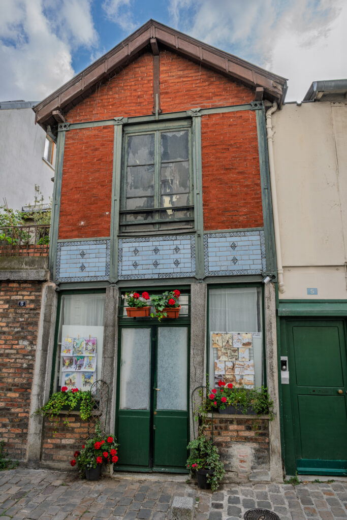 Men återvänd därefter till Rue des Saules och den klassiska cabaretlokalen Au Lapin Agile, fortfarande i drift. När du är nöjd med att beundra det huset, går du tillbaka på Rue des Saules och tar höger när du passerat La Maison Rose.