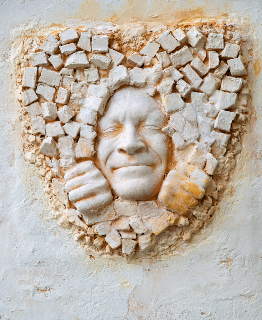 Fortsätt längs gatan. men ha uppsikt över vänstra sidan. Precis innan du kommer till nummer 20, finns det en portal i husväggen, Passage des Abbesses. En kort bit in i passagen hittar du den här gubben som försöker titta fram ur väggen. (Jag hoppas han finns kvar.)