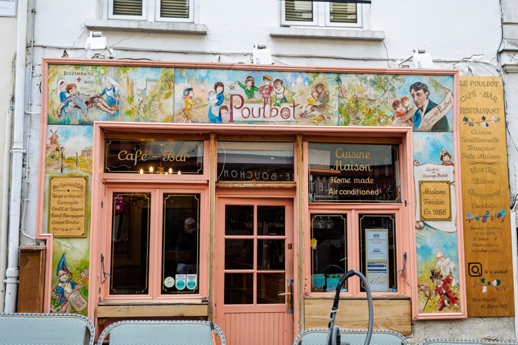 Längs Rue Poulbot passeras bland annat Musée Dali, mot slutet finner vi denna restaurang som likt gatan är uppkallad efter tecknaren och illustratören Francisque Poulbot. Målningarna på väggen är väldigt representativa för hans stil – men förfärdigade av en betydligt mer samtida artist. På denna restaurang har jag förtärt en Cofit de Canard som utan att vara, på något sätt, märkvärdig, var fullständigt OK. Övriga gäster i mitt sällskap var också nöjda med sina rätter. Nu tar du av till vänster på Rue Norvins.