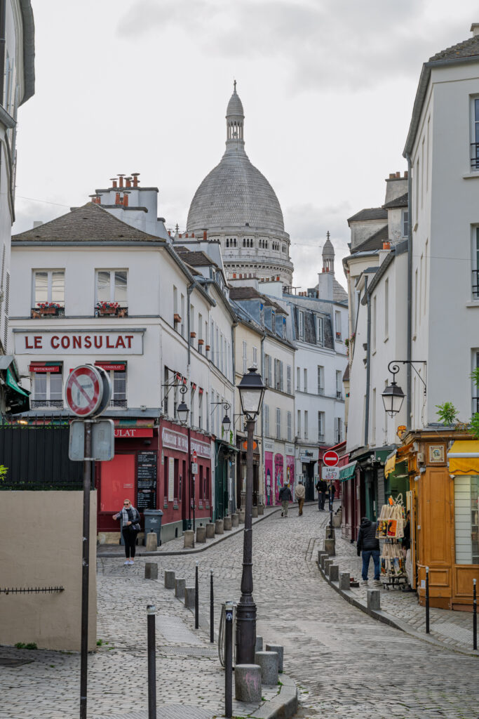 När du kommit en bit på Norvins, vänder du dig om för en av dessa, för Montmartre så typiska, vyer mot Sacré-Cœur.