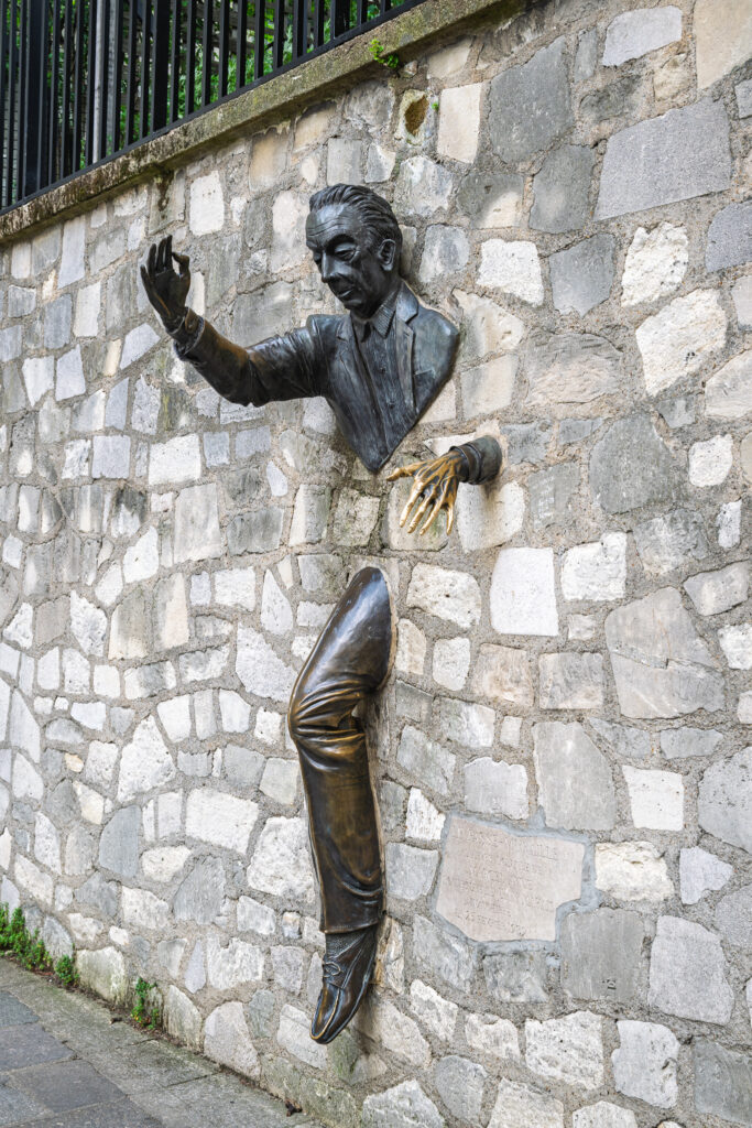 När Avenue Junot tar slut så fortsätter du rakt fram på Place Marcel Aymé och hälsar på han som fastnade i väggen. (Le Passe-Muraille är en novellsamling av just Marcel Aymé, i svensk översättning Mannen som kunde gå genom väggar. Titelhistorien handlar om en man som upptäcker att han gå genom väggar.) Efteråt är det dags att svänga vänster på Rue Girardon.