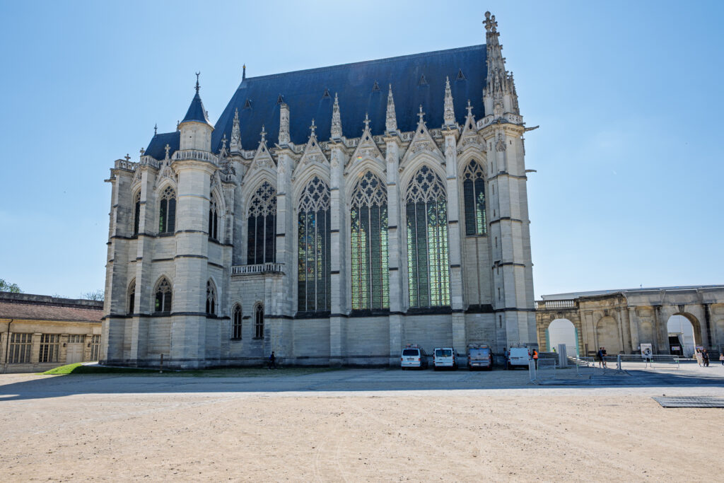 Den yttre muren med vallgrav stod färdig 1380. 1379 påbörjades bygget av ett kapell som skulle hysa relikerna från Louis IX:s tid, men när Charles avled året efter började bygget gå långsammare. Att Vincennes var ockuperat av engelsmännen under mer än 20 år under hundraåriga kriget gjorde inte saken bättre. Det var först under François I, som var en återkommande besökare, som arbetet återupptogs 1520. Hans som Henri II kunde slutligen inviga kapellet 1552.